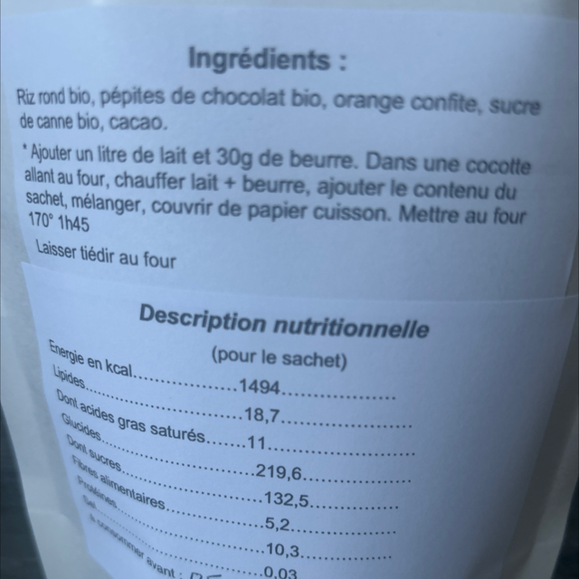 Riz au lait chocolat orange